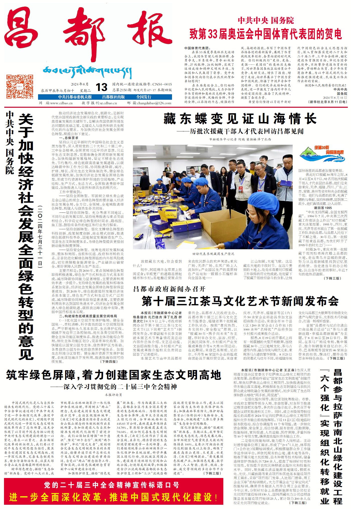 中國式現(xiàn)代化是人與自然和諧共生的現(xiàn)代化。黨的二十屆三中全會(huì)審議通過的《中共中央關(guān)于進(jìn)一步全面深化改革、推進(jìn)中國式現(xiàn)代化的決定》,對(duì)圍繞中國式現(xiàn)代化進(jìn)一步深化生態(tài)文明體制改革作出了總體部署,這充分體現(xiàn)了以習(xí)近平同志為核心的黨中央對(duì)生態(tài)文明建設(shè)的理念一以貫之、要求一以貫之。在全面深化改革的新征程上,我們要以習(xí)近平生態(tài)文明思想為指引,聚焦著力創(chuàng)建國家生態(tài)文明高地,進(jìn)一步深化改革,完善生態(tài)制度體系,健全污染防治體系,讓藍(lán)天綠水青山成為昌都最鮮明的標(biāo)識(shí)。